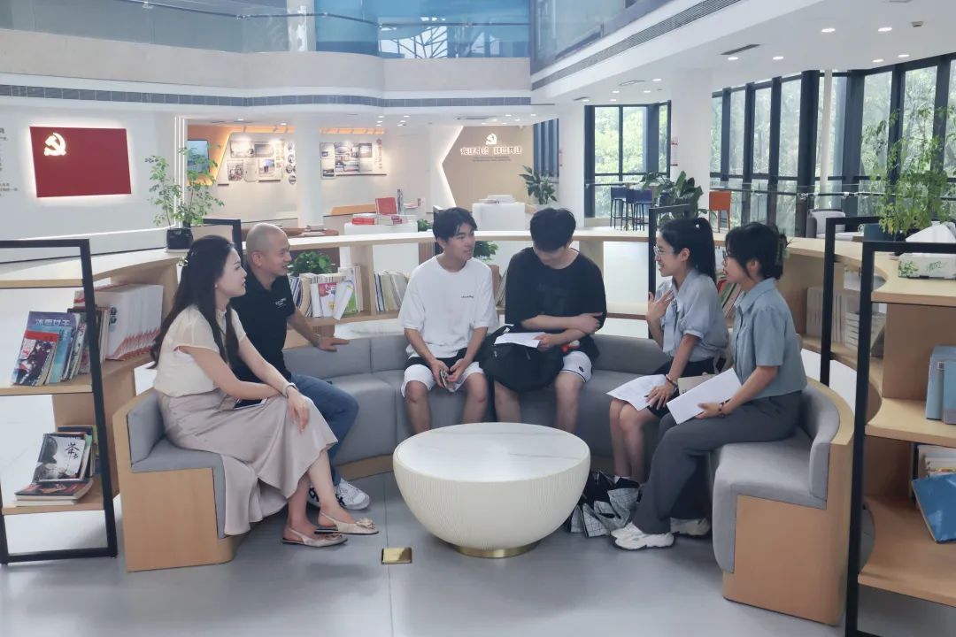 为深入学习宣传贯彻党的二十大和团的十九大精神,忠实践行“八八战略”,引领浙大宁理学子用青年视角观察“八八战略”指引下浙江企业在“块状特色产业优势”下的发展成就,7月18日,浙大宁波理工学院“浙”里薪火实践团赴雅戈尔集团进行实地调研、深入访谈。围坐在雅戈尔集团党群服务中心活动角,“浙”里薪火实践团的00后青年与雅戈尔集团的员工分享故事、对话感悟,80、90、00后的思维在这里碰撞。